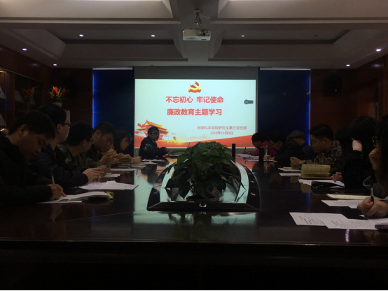 为全面提高党员思想道德素质,宣传廉洁文化,普及廉洁知识,传播廉洁价值,提高党员廉洁素养。2019年12月3日,bv伟德国际1946研究生第三党支部在01215会议室,开展廉政教育主题学习活动,会议由支部书记陈文甫主持召开,支部全体党员参加本次会议。